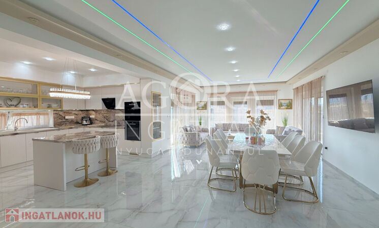 - Lakótér: 210 m² – tágas, modern, egyszintes elrendezés